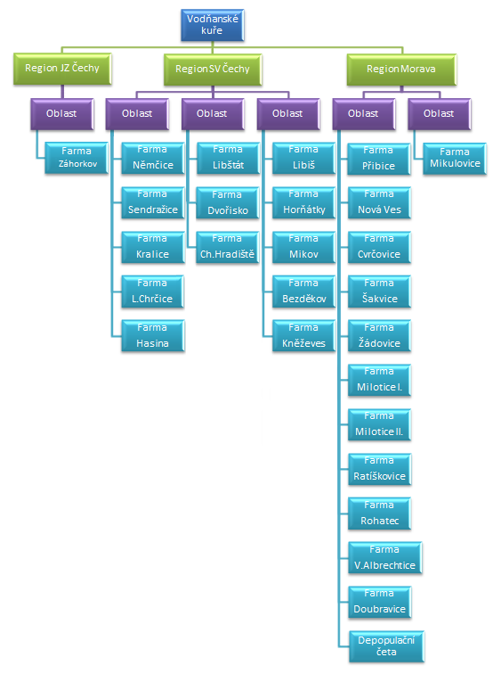 Společnost pro tyto účely spravuje 26 farem. Tamní kuřata pochází z českých chovů a jsou živena krmnými směsmi od českých výrobců. Kvalita a zdraví celého chovu jsou zajištěny přísným veterinárním dohledem při líhnutí i výkrmu kuřat. Důležitým faktorem je též standardizovaný výkrm kuřat na všech farmách při přísném dodržování hygienických a bezpečnostních předpisů. Pouze tak je možné zajistit zdraví chovů a nejvyšší kvalitu produkce pro naše zákazníky.