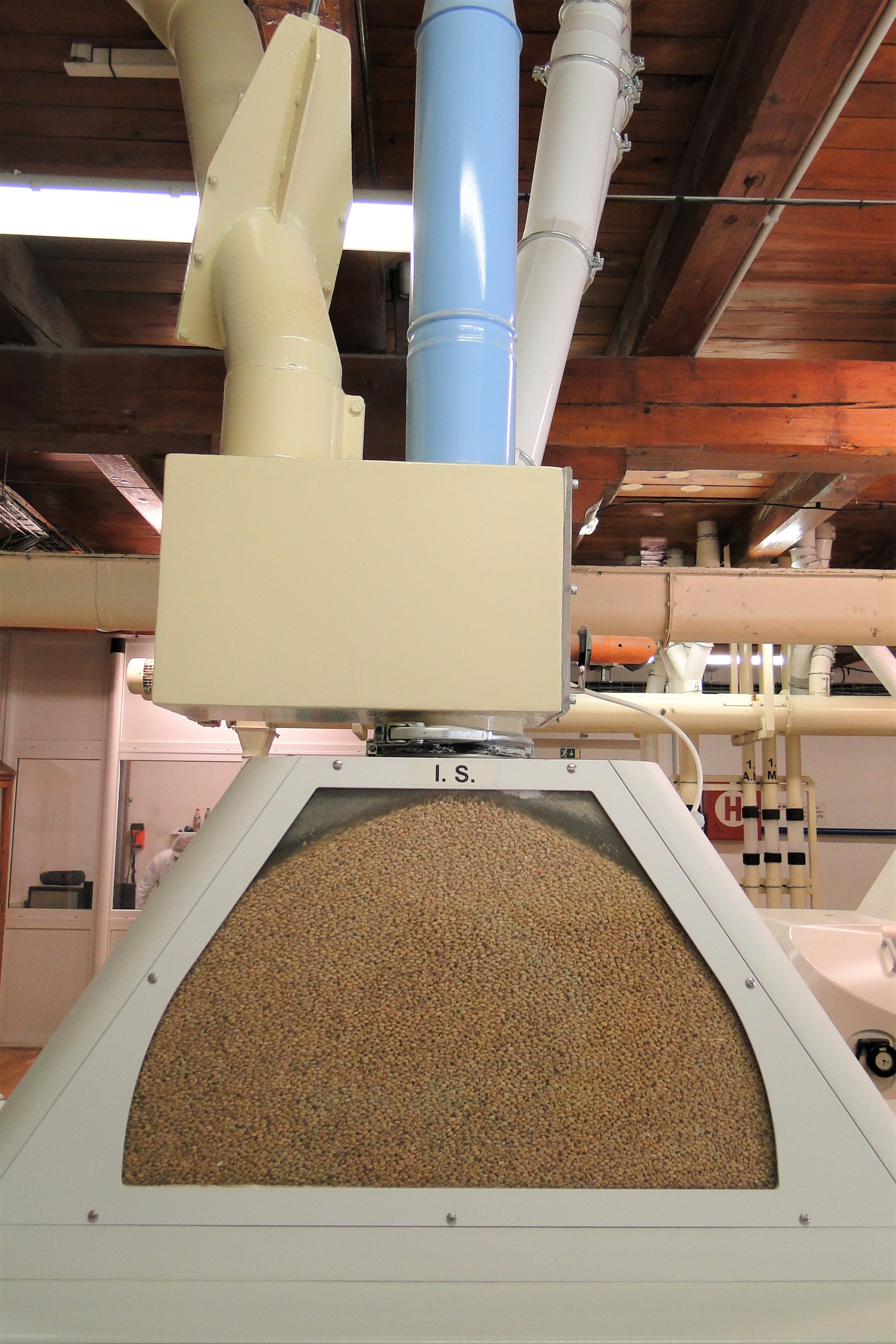 A jak to všechno vlastně vzniká? Základní surovinu dovezou nákladní automobily, na každém z nich bývá kolem 30 tun obilí. Do některých mlýnů občas dojedou i traktory s vlekem a to pak je množství poloviční. Když auto přijede, musí být obilí vždy ovzorkováno. To se provádí na automatických vzorkovačích, ze kterých se zrno dopravuje přímo do obilní laboratoře na rozbor. Vstupní kontrola zahrnuje celou řadu parametrů, např. vlhkost, číslo poklesu, obsah dusíkatých látek, lepku, ale také stanovíme obsah příměsí a nečistot a kontrolujeme přítomnost živých či mrtvých škůdců a zda obilí nemá nežádoucí pach (zatuchlé, znečištěné naftou, apod.). Když je obilí v pořádku, může ho silomistr naskladnit do sila. Při naskladňování prochází přes předčistírenskou linku, kde se zbaví části nečistot a prachu.