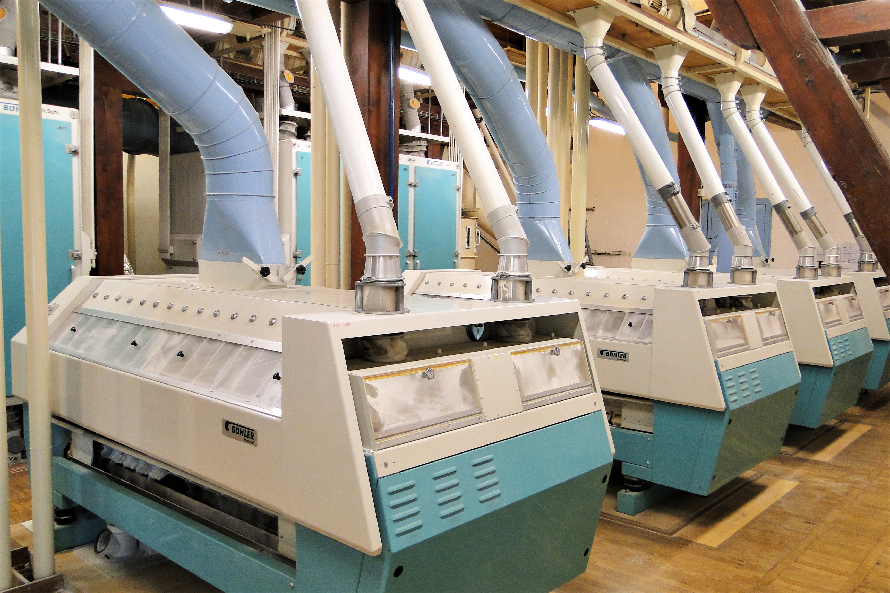 Ve mlýně se obilí rozemílá na válcových stolicích. Vzniklé melivo „letí“ v potrubí pneudopravy nahoru, kde se směs na vysévačích roztřídí na jednotlivé složky, které se zpracovávají dále každá zvlášť. Na předních pasážích získáváme mimo jiné i krupice, které v dalším kroku vyčistíme a meleme na hrubé a polohrubé mouky.  Na každé pasáži také vznikají hladké mouky. Takto to stále pokračuje, až nám zůstane nevymletá část ve formě klíčků, krmné mouky a otrub. Ty se využívají jako krmné suroviny.