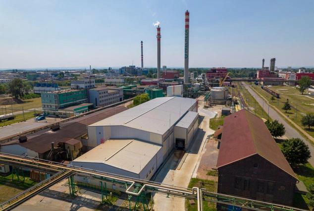 V jižní části stávající výrobny Monosalu jsou umístěny nové technologické rozvodny a kompresorovna. Součástí nového skladu je i pneudoprava Monosalu do dvojice expedičních sil, tím dojde k výraznému zlepšení podmínek při nakládce do silovozů.
